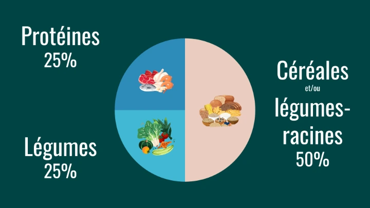 A chaque repas, l'objectif est de répartir son assiette de la manière suivante :